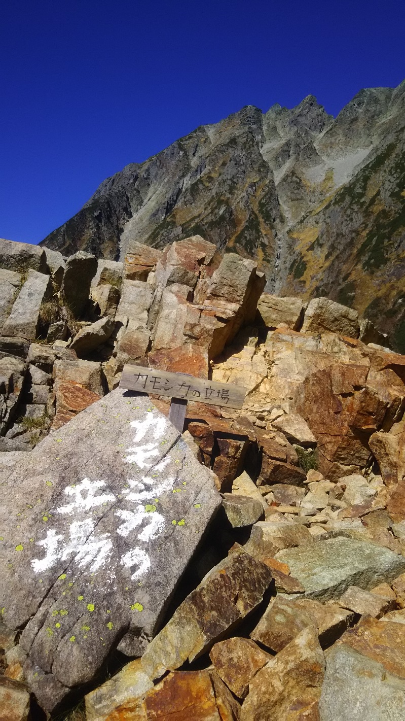 上高地で観光散策している人たちには、こんな別世界のような危険なルートを歩いている人たちが、双眼鏡を覗いたら見える・・・なんて知る由もない。